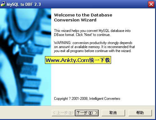 MySQL to DBF v2.3 英文正式版(MySQL到DBF資料庫轉換工具)
