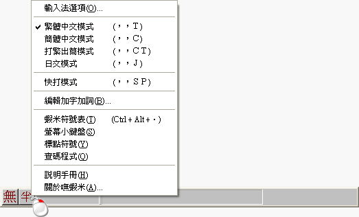 ※改良的嘸蝦米運作,避免輸入法的全半型狀態和位置被其它輸入法影響。