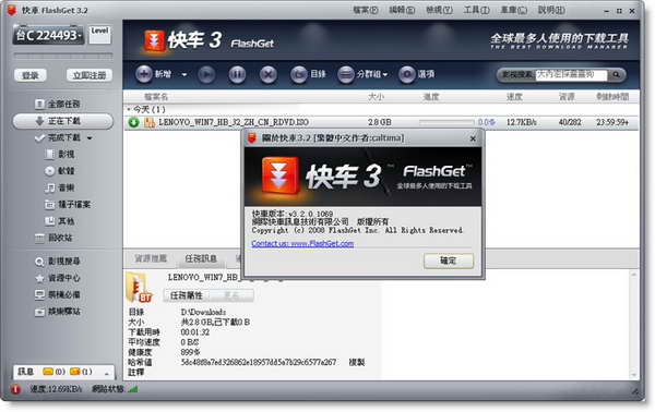 快車3(FlashGet) 3.2.0.1069繁體中文免安裝去廣告版[最新版]